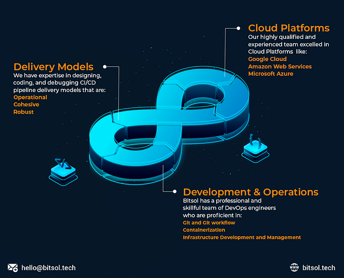 Bitsol Technologies provides an open DevOps solution that includes services to provide end-to-end delivery processes. Our team uses modern practices to provide a robust set of integrations and add-ons, allowing teams to tailor their toolchain to their specific requirements.